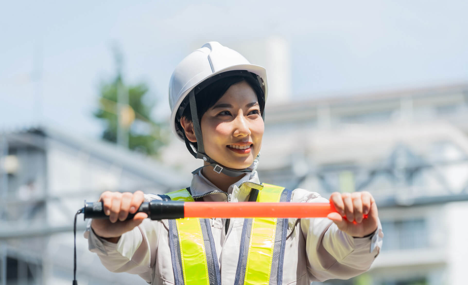 交通誘導警備とは、道路工事や建築工事、駐車場などにおいて、車や歩行者が安全に通行できるようサポートする警備業務です。